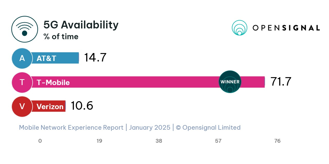 For three years in a row T-Mobile has claimed wins in all five overall network experience categories in Opensignal’s January Mobile Network Experience Report with additional 5G Performance and network consistency wins