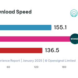 Opensignal Awards: USA: Mobile Network Experience Report January 2025, based on independent analysis of mobile measurements recorded during the period September 1 – November 29, 2024. © 2025 Opensignal Limited.